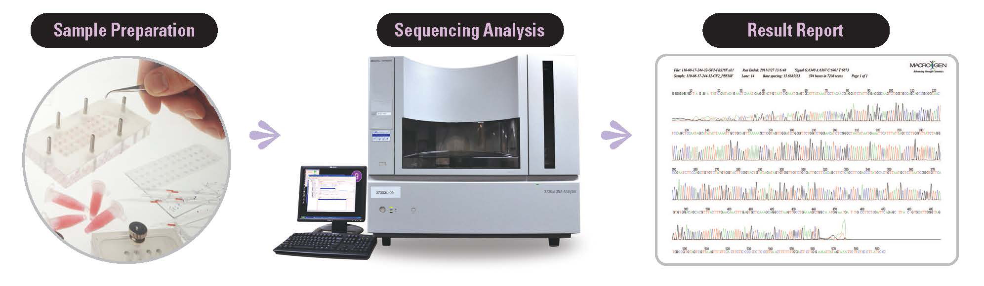 Standard sequencing is a service that sequences PCR products and plasmid DNA requested by customers. Macrogen provides quicker and more accurate services based on the Capillary Electrophoresis Sequencing (CES) automation system and extensive experience. After the results are delivered, an expert in the sequencing field is ready to provide help until the follow-up.
