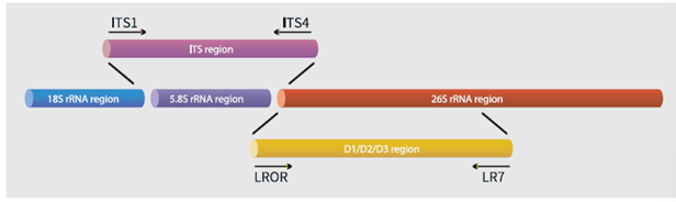 การระบุชนิดของเชื้อราเป็นกระบวนการที่ใช้เทคนิคการจัดลำดับบนยีน rRNA ที่ครอบคลุมหลายบริเวณ เพื่อให้สามารถระบุชนิดของเชื้อราได้อย่างละเอียด ไม่ว่าจะเป็นรา ยีสต์ หรือเห็ด ดังนี้
