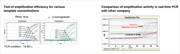 BioFact™ Real-time PCR Series is providing optimizing system for easy-use using intercalating reagent and probe in real-time PCR amplification. Included BioFact™ H-Star DNA Polymerase helps accurate and reliable result to enable target-specific amplification due to its hot start characteristic by inhibition of primer- dimer or non-specific binding. Optional or mixed fluorescent dye, EvaGreen™ is available to use as an intercalating reagent, even though high resolution melting (HRM) analysis is applicable for genetic analysis such as SNP genotyping, mutation discovery or CpG methylation. BioFact™ Real-time PCR Series which is for the purpose of Taqman® probe or other fluorescent dye such as SYBR® Green are also available with various easy-to-use types.