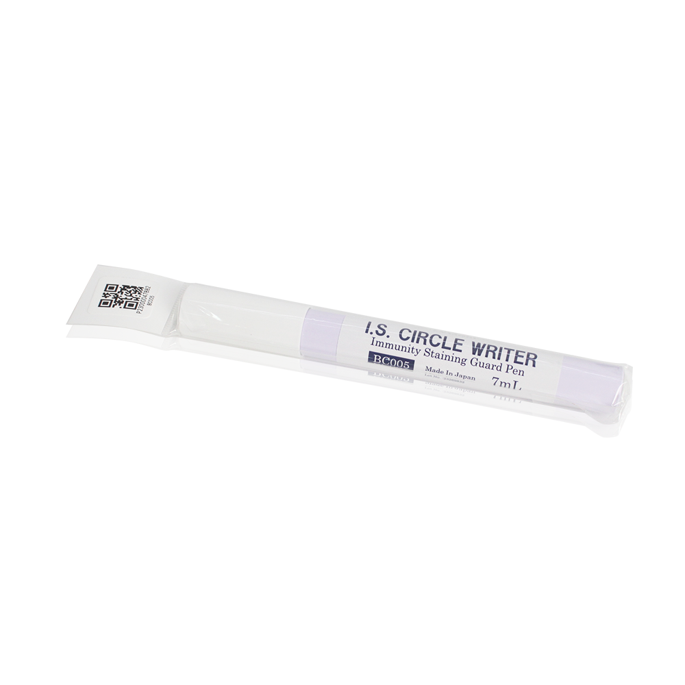 Use pen to draw a hydrophobic circle around slide-mounted tissue. Prevents the waste of valuable reagents by keeping liquid pooled in a small droplet. Insoluble in ethanol, acetone and water, but will wash off with xylene.