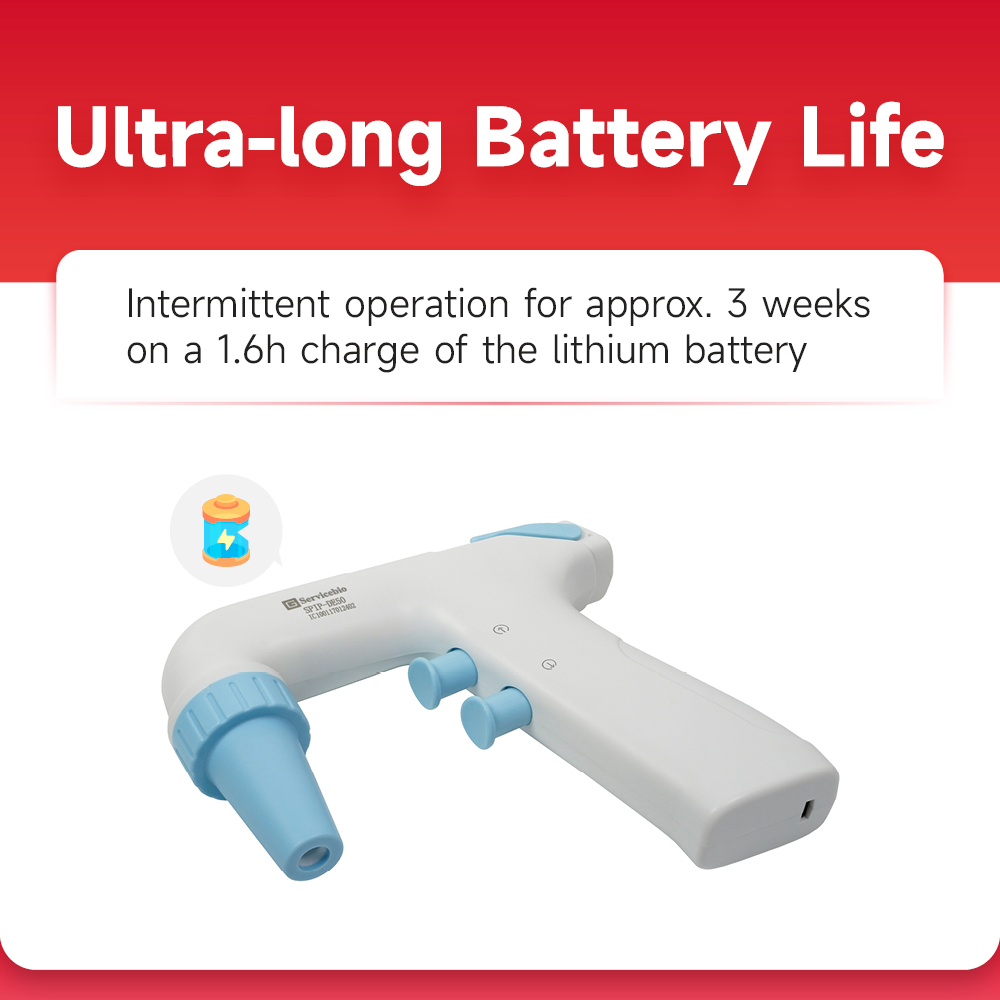 - LED indicators display the battery status of the pipette, providing a simple and clear indication.