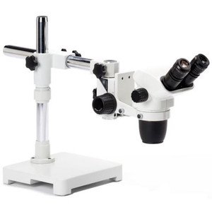 Binocular stereo zoom microscope NexiusZoom, 0.67x to 4.5x zoom objective, magnification from 6.7x to 45x with universal one-arm stand. Without illumination