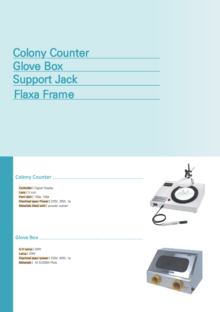 Colony Counter, Glove Box, Support Jack, Flaxa Frame