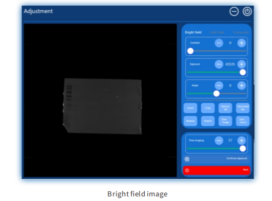 | Real-time imaging | Real-time presentation of the changes in sample signals during the exposure process. allowing for the observation of every detail of the capture. Overexposed areas will be indicated for samples with overexposure. | |