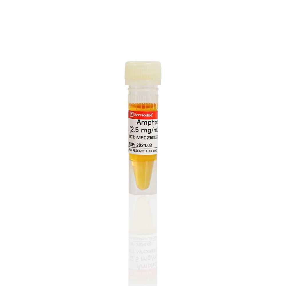 Amphotericin B is a polyene antifungal agent produced by Streptomyces nodosus. It inhibits fungal growth by increasing the permeability of fungal cell membranes. It is primarily used to prevent contamination of cell cultures with yeasts and fungi. This product is a 2.5 mg/mL solution of Amphotericin B. The solvent is DMSO, and it can be used directly by dilution with culture medium. The commonly used working concentration is 0.25-2.5 μg/mL.