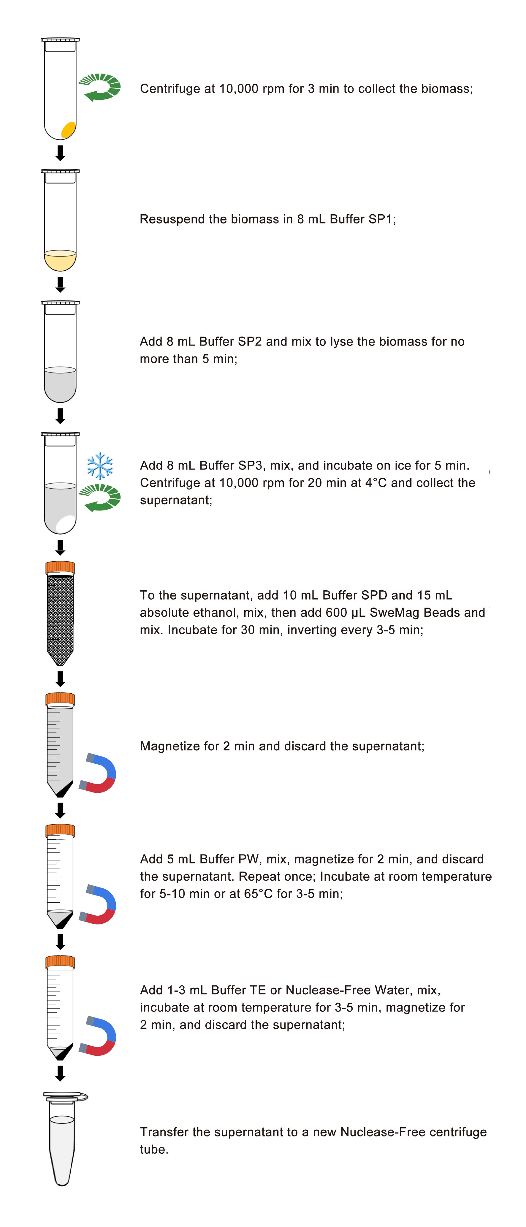 2. Add all the RNase A provided in the kit to Buffer SP1 before use, and it can be stored at 4°C for 6 months.