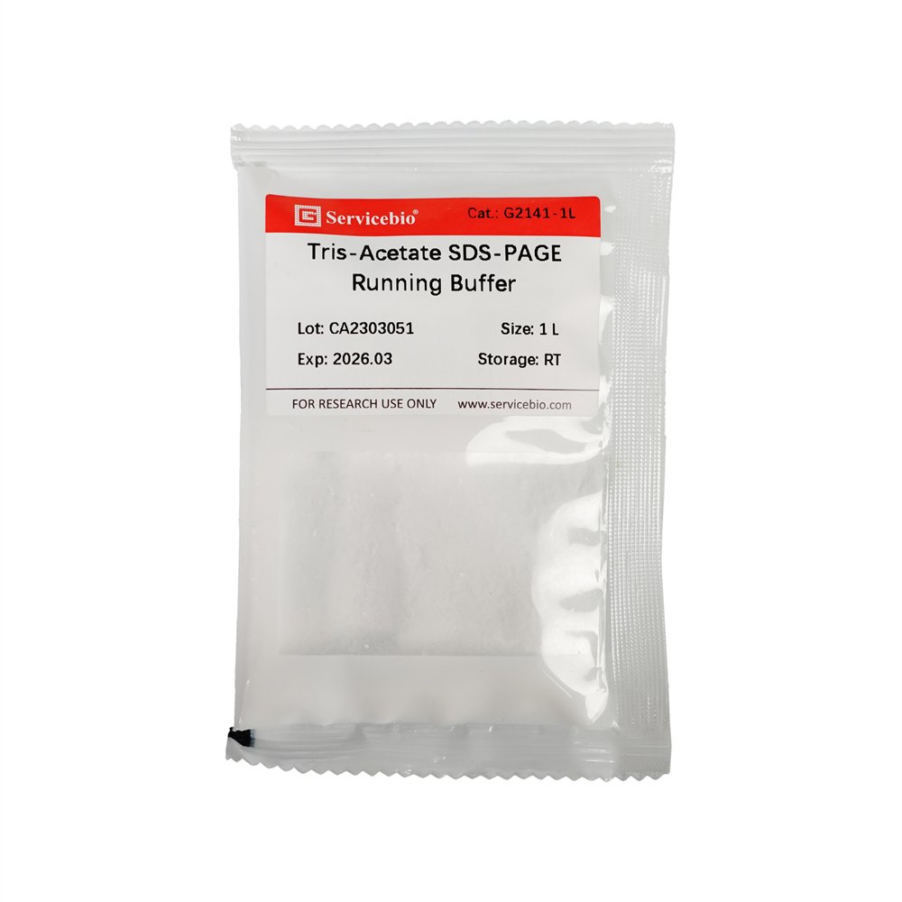 This product Tris-Acetate SDS-PAGE Running Buffer (Powder) that is Tris- Acetate SDS-PAGE protein gel electrophoresis buffer in the form of powder. This product is a fine powder, rapid dissolution, easy to use, after the preparation and dissolution of the Tris- Acetate system for protein gel electrophoresis. This buffer provides excellent separation of large molecular weight proteins when used for protein gel electrophoresis in the Tris- Acetate system. The main components of this product are 50 mM Tris、50 mM Tricine、0.1% SDS,pH 8.2-8.5@25。