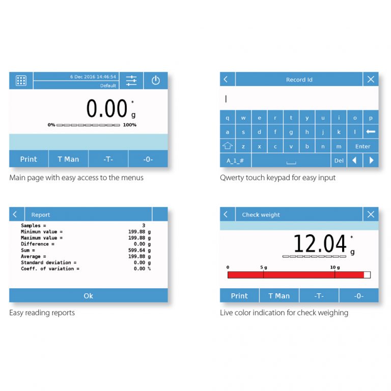 Precision Touchscreen Resolution 0,001g – 0,01g – 0,1g