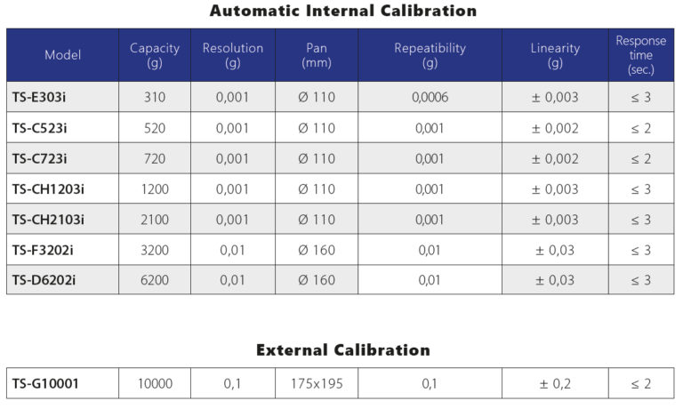 » Automatic internal calibration ( for models TS-C / TS-D / TS-E / TS-F)