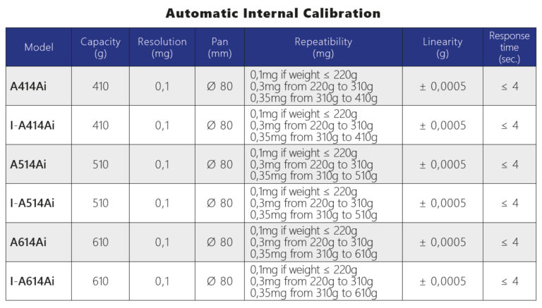 A balances have -as standard- automatic internal calibration that allows always precise measurements, practically independent from enviroment temperature changes.