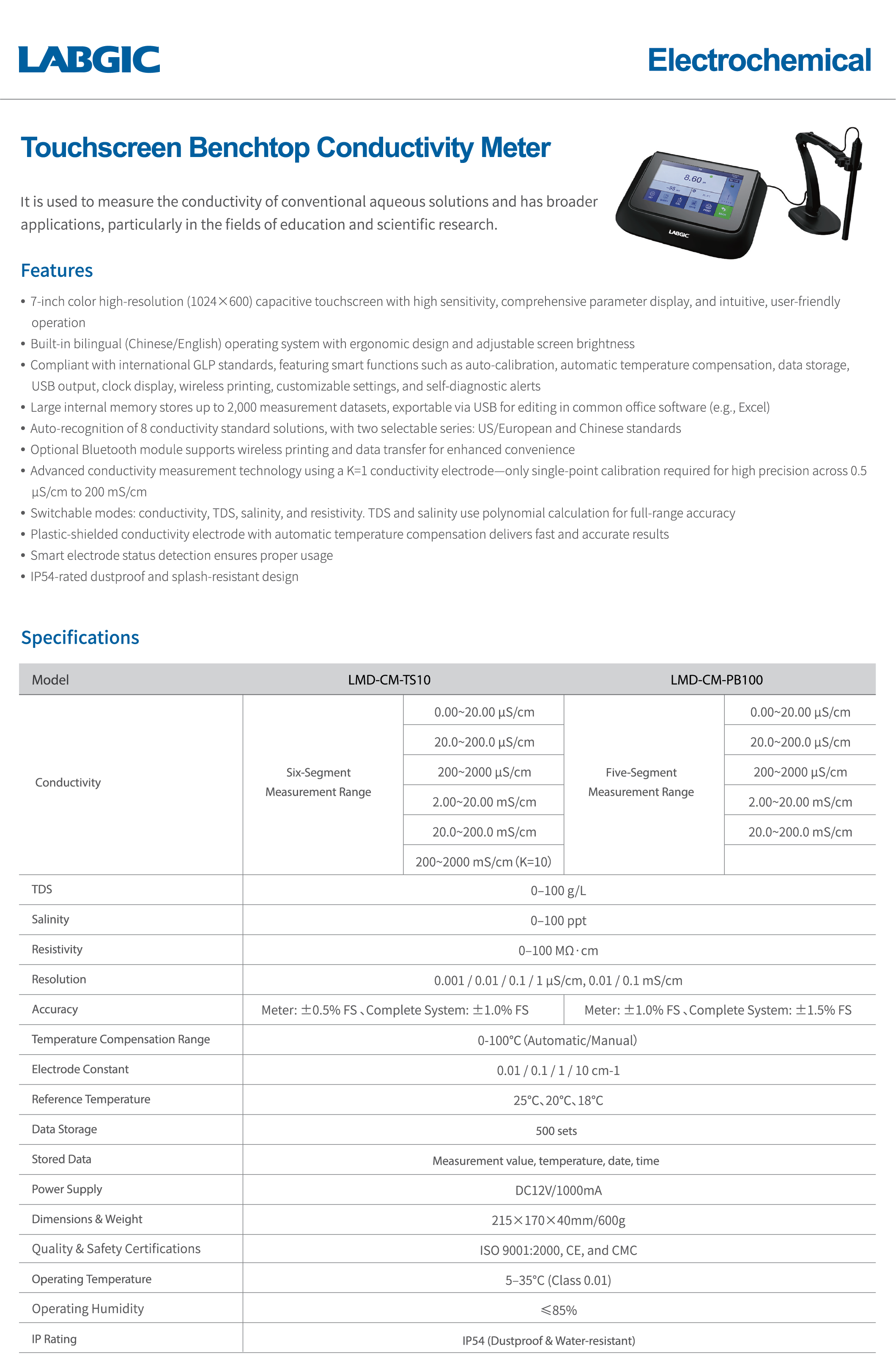 Touchscreen Benchtop Conductivity Meter