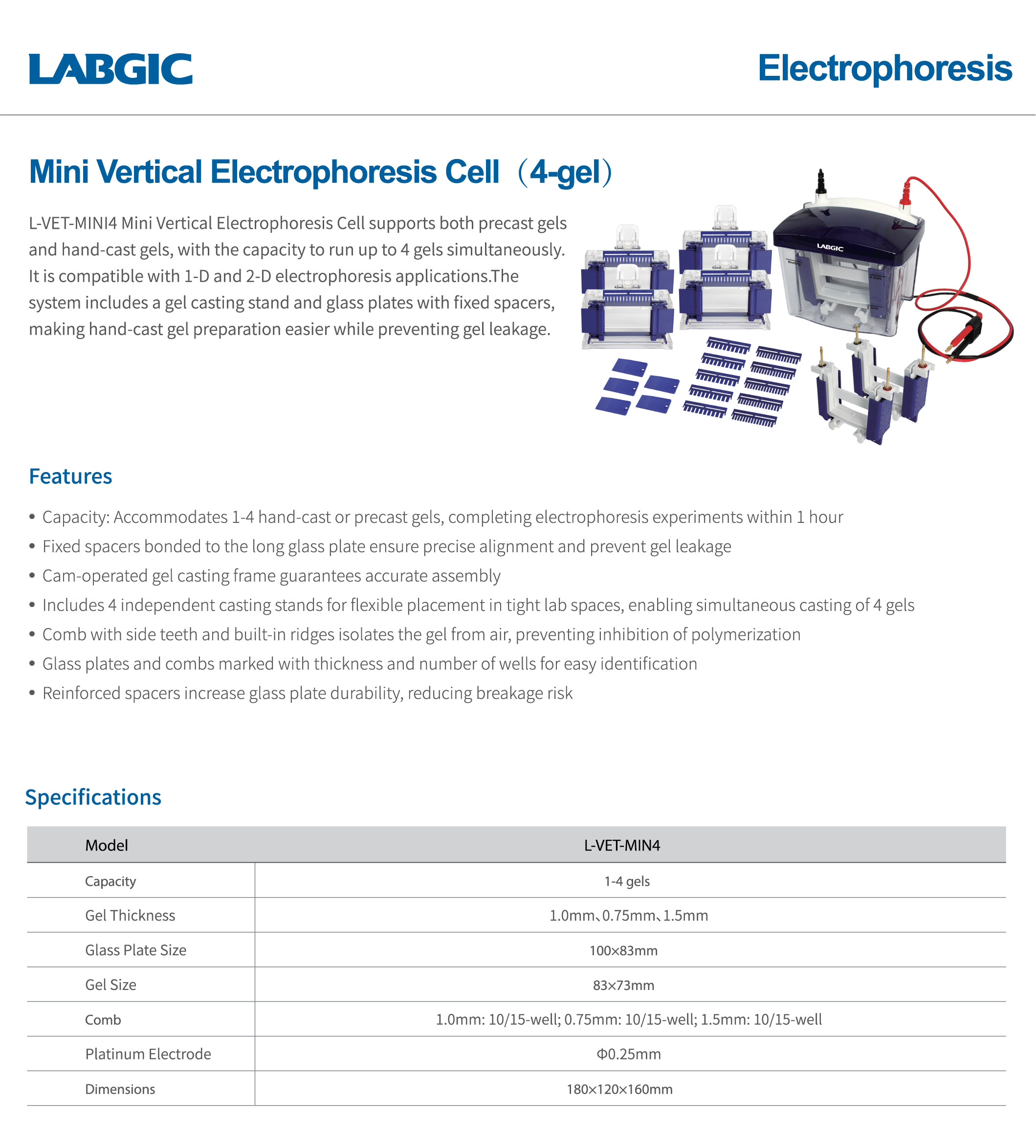 Mini Vertical Electrophoresis Cell (4-gel)