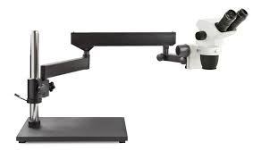 Binocular stereo zoom microscope NexiusZoom EVO, 0.65x to 5.5x zoom objective, magnification from 6.5x to 55x with articulated stand with heavy stand. Without illumination