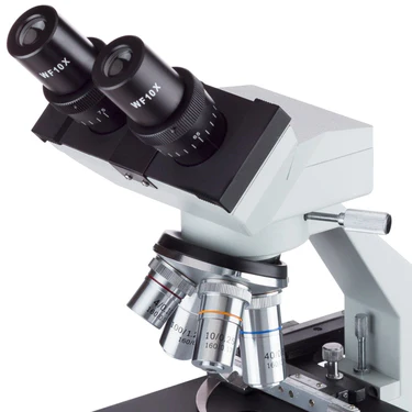The objective turret provides instant access to 4 magnification levels to easily focus in on minute details from 40X to 1000X. This covers magnifications needed for studying hair follicles, cells, and bacteria. These high-quality lenses are achromatically corrected to improve resolution and color accuracy.