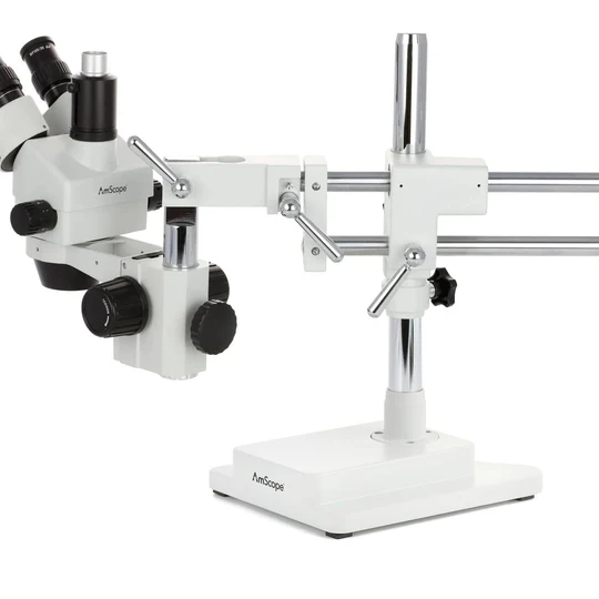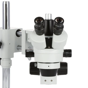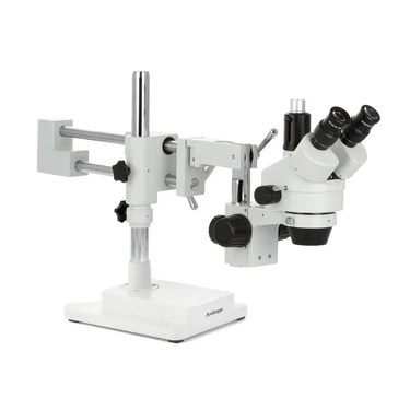 SM-4 Series Zoom Trinocular Stereo Microscope on Double Arm Boom Stand
